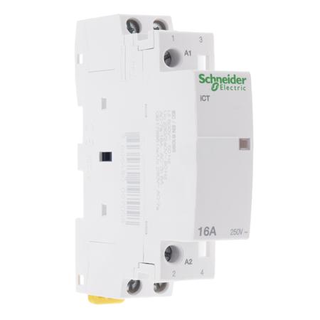 Schneider Electric iCT Series Contactor, 16A Current Rating, 230V AC Coil Voltage - A9C22712 This contactor is designed for various electrical applications, supporting functions in motor, heating, and lighting systems. It features a compact design with dimensions of 18mm in length, 81mm in width, and 68mm in depth, making it suitable for mounting on 35mm DIN rails. It operates with a coil voltage of 230 to 240V AC and includes a dual-pole configuration. Features & Benefits • Designed for remote control operation for versatile application • High contact voltage rating of 250V AC for robust performance • Capable of handling 16A with electrical durability of up to 100,000 cycles • Screw terminal type ensures secure and reliable connections • Functions as a reversing contactor to control motor direction • Operational temperature range from -5°C to +60°C for flexibility in various environments Applications • Used for controlling motors in industrial automation systems • Ideal for heating systems to manage temperature control • Suitable for lighting control in residential and commercial buildings • Used with compatible automation control devices for enhanced functionality What is the significance of the contact voltage rating? The contact voltage rating of 250V AC indicates the maximum voltage the device can safely handle, ensuring reliable operation in various applications while preventing electrical overload. How frequently can this unit be switched under typical applications? It can manage up to 100 switching operations per day, making it effective for regular use in automation environments without compromising performance. What types of terminals are provided for cable connections? It features tunnel type terminals designed for rigid and flexible cables, supporting multiple sizes for both control and power circuits to accommodate different installation needs.