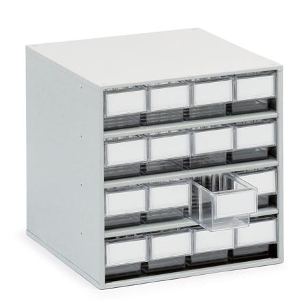 Treston 16 Drawer Storage Unit, Plastic, 395mm x 400mm x 400mm, Clear