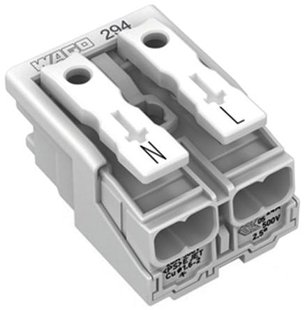 WAGO 294 Series Power Supply Connector, 2-Pole, Female, 24A
