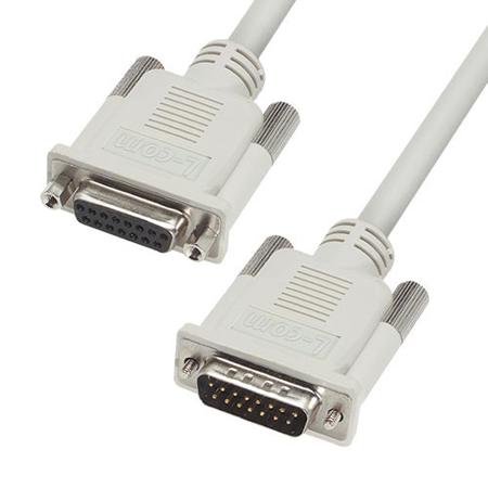 L-Com Male 15 Pin D-sub to Female 15 Pin D-sub Cable assembly, 10ft PVC
